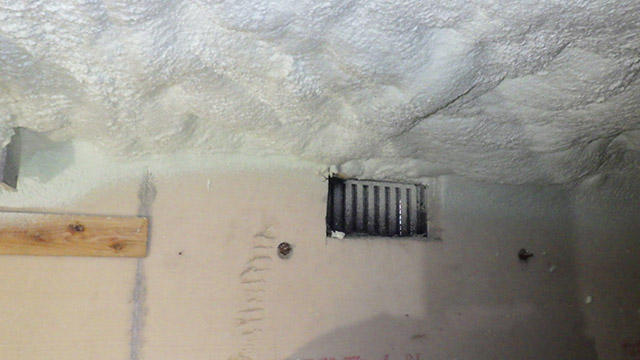 シートを外し、ウレタン断熱材を隙間なく吹き付け、しっかり冷気を防ぎます。![]()